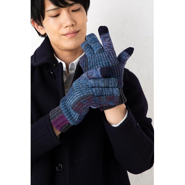 [エルオム] ボア入り スマホ対応 メンズ ニット手袋 ケース付 Free Size 5指スマホ対応(ネイビー)