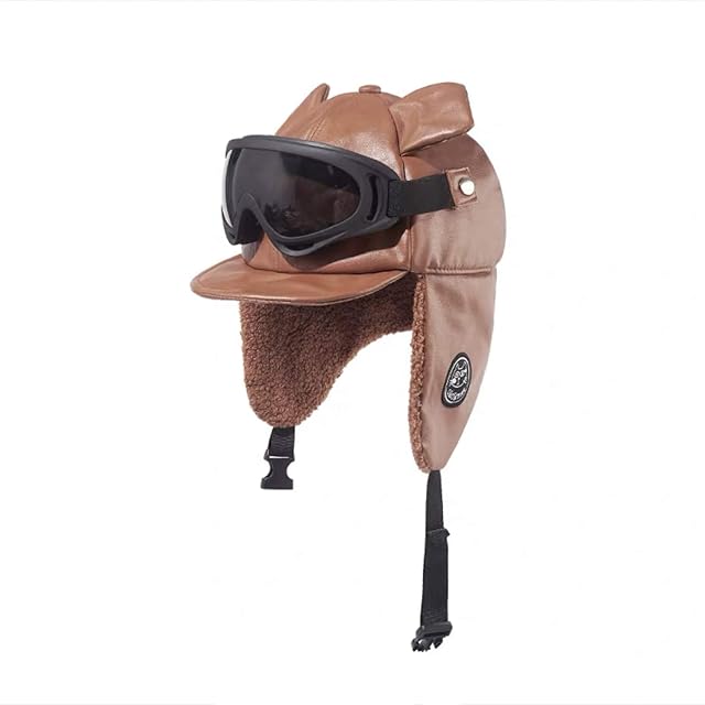 [Croogo] パイロットキャップ ボア帽子 スキー フライトキャップ 裏起毛 耳あて付きキャップ ゴーグル付き 防寒 防風 飛行帽 つばつき 自転車 通学 アウトドア スノボ 旅行 秋冬帽子(G-PL08-赤茶褐色)
