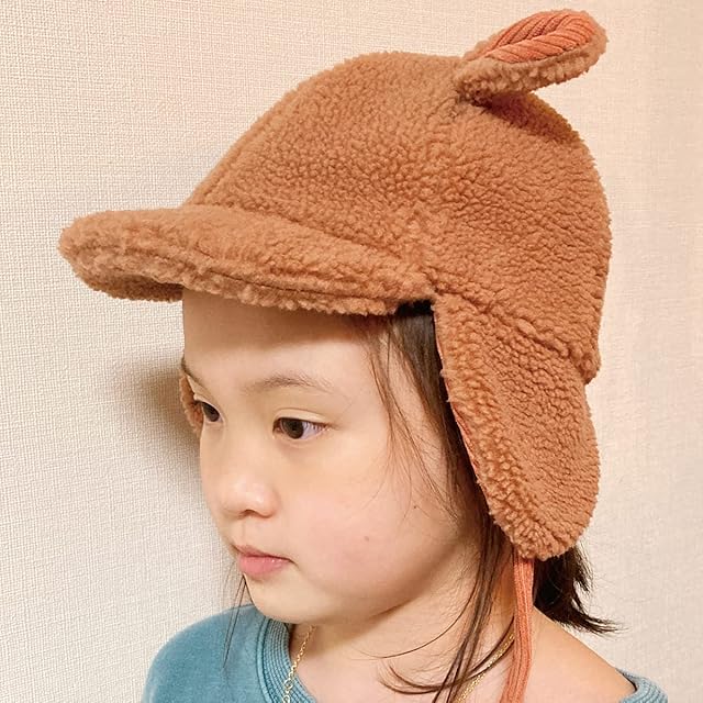 フワフワしたボア生地のウサギの耳付き暖かフラップキャップ