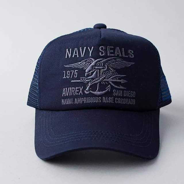 [アヴィレックス] 2サイズ展開 スタンダード ミリタリー メッシュキャップ XL LL 大きいサイズ 帽子 キャップ メンズ ビッグサイズ 夏 (JP, アルファベット, Free Size, NAVYSEALSオールネイビー)