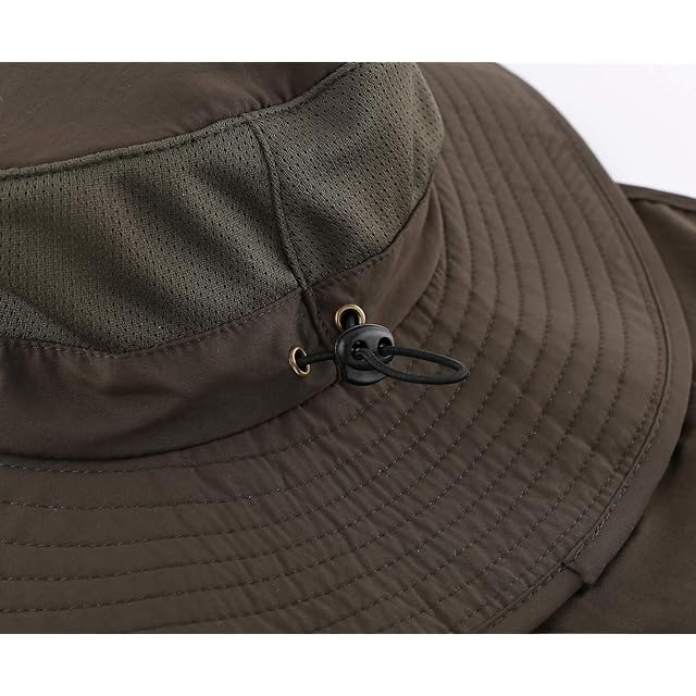 [Connectyle] アウトドア ユニセックス UPF50+ メッシュ サファリハット つば広 日焼け防止 農作業 帽子 UVカット ハット (アーミーグリーン)