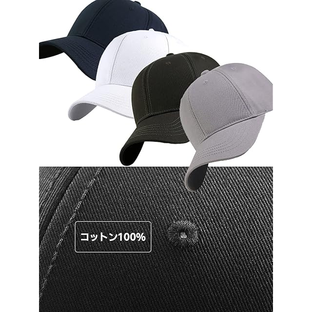 深めにかぶれる大きいサイズのベースボールキャップです。型崩れしにくいコットン100%生地。