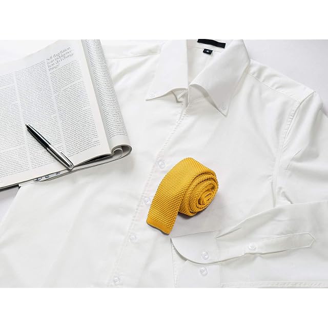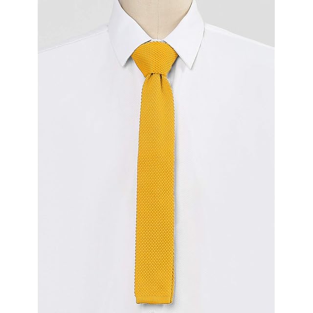[Allegra K] ニットタイ ニット ネクタイ ナロータイ 無地 ソリッド メンズ 洗濯可能 イエロー 146 x 5.5 cm