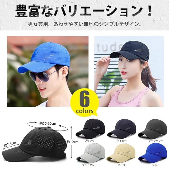 ☆【超軽薄・吸水速乾】軽薄メッシュデザインで帽子をもっと軽くかぶるように、長時間かぶっても束縛感がありません。キャップ内部には汗の吸収性の高い素材が使われており、汗をすばやく吸収してすばやく発散します。夏場の暑さやスポーツで汗をかいても、サラサラと快適の状態を保てます。軽量で風通しも良く吸汗速乾性があり、清涼感があり蒸れにくく、長時間使っても快適に使えます。