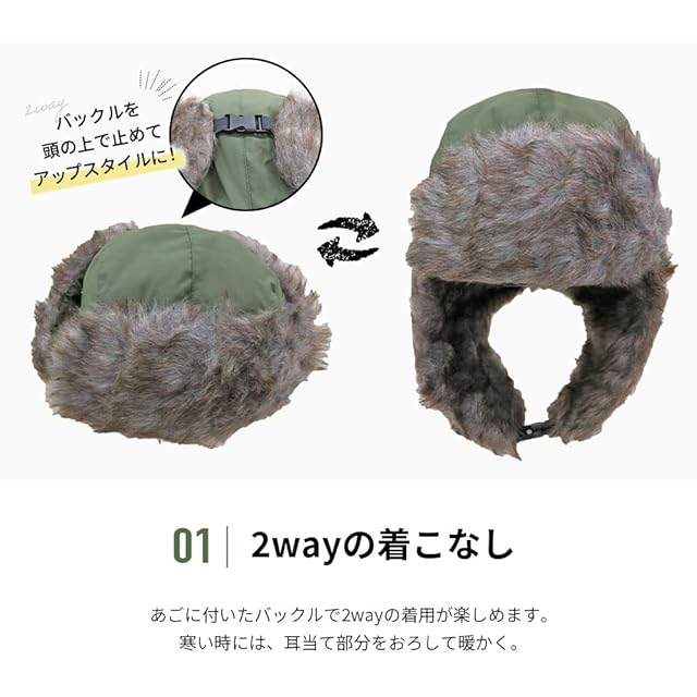 パイロットキャップ メンズ レディース 帽子 ボア 耳当て 防寒 トラッパー アビエイター (カーキ)