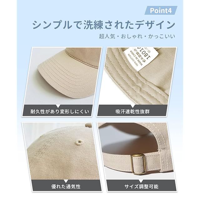【コットン100%・快適フィット】快適なかぶり心地と最高のフィット感を追求したキャップです。キャップに使用している上質な100%コットン素材は、素早く汗を吸い上げ、速乾性に優れます、通気性が良いです、柔らかくて丈夫な生地を熱い夏でも一日を快適に過ごす。優れた着用感のある、 ファッション性、実用性兼備の風格が。夏だけでなく、オールシーズンに活躍していただけます。