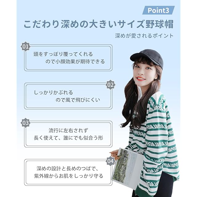 【こだわりの深さ!洗練されたデザイン】浅めのキャップだと領が大きく見えがち。流行だけでなく、ずっと被れて誰でも似合うよう、被りを少し深めに設計。締め付けのない被り心地で、小効果も期待できそう。合わせやすいので、コーテの格上げアイテムにも◎かぶるだけで簡単にスタイリングが完成します。または慌ただしく外出しなければならないときにも、サッとかぶるだけでしっかり決まる使い勝手のよいファッションアイテムです。