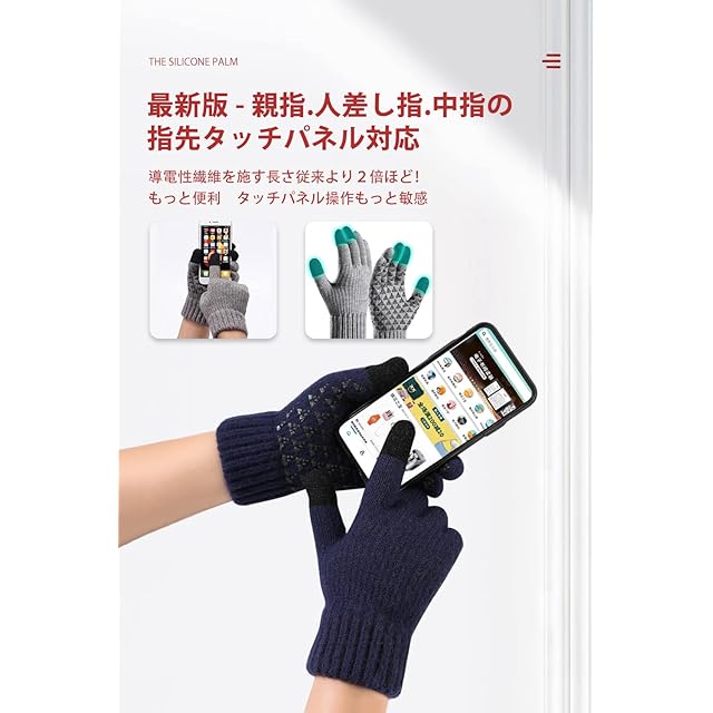 ⇒【最新アップグレード タッチパネル対応範囲拡大】普通の親指と人差し指だけタッチパネル対応できる手袋と違って、本商品はお客様の声を集中して、中指もタッチパネル対応出来るようになりました。そして、もっと操作便利のため、タッチパネルの対応範囲も本来の2cmより4cmに長めに仕上げました。冬で手袋のままスマホを弄るなら絶対お試しましょう。