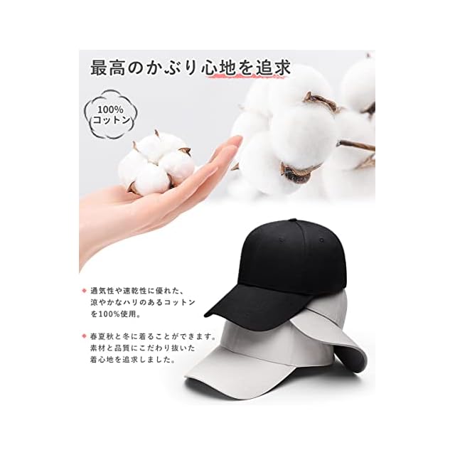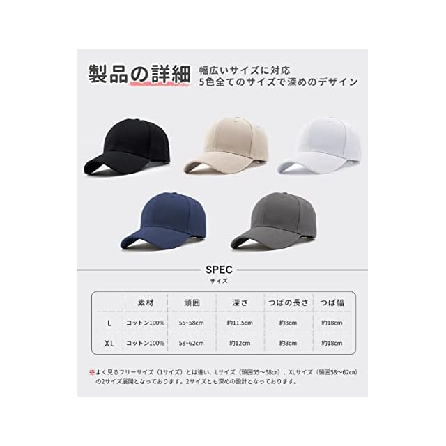【アジャスタブルな大きいサイズ】よく見るフリーサイズ(1サイズ)とは違い、Lサイズ(頭囲55~58㎝)、XLサイズ(頭囲58~62㎝)の2サイズ展開となっております。帽子は金属製のバックルで閉じられており、お好みのサイズに調整できます。また、大きいサイズの作りとなっているので深めに被ることもでき小顔効果も得られます。横幅が広く奥行が深い傾向にある日本人の頭囲を考慮したデザインのキャップメンズです。