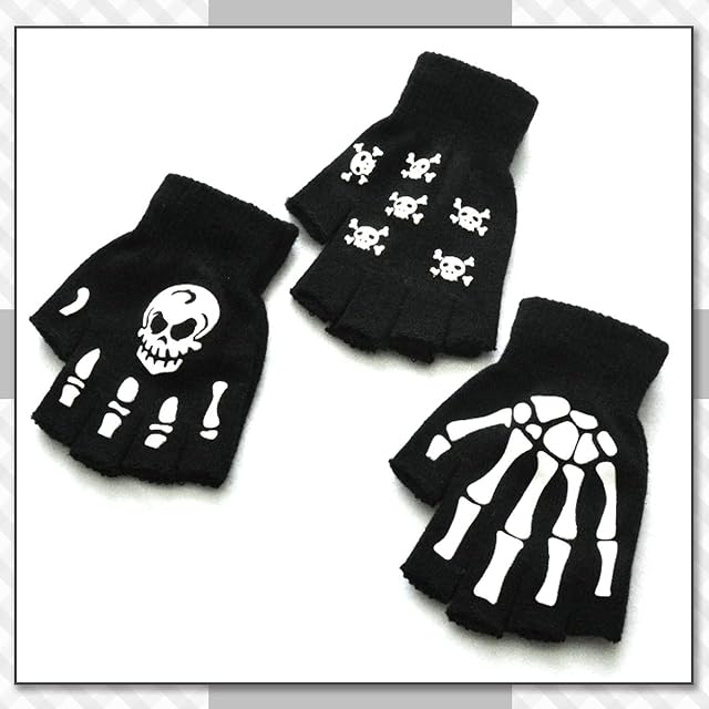 おしゃれ で ユニーク な 指なし ニット 手袋 ! ドクロ スカル スケルトン デザイン の フィンガーレス 手袋。