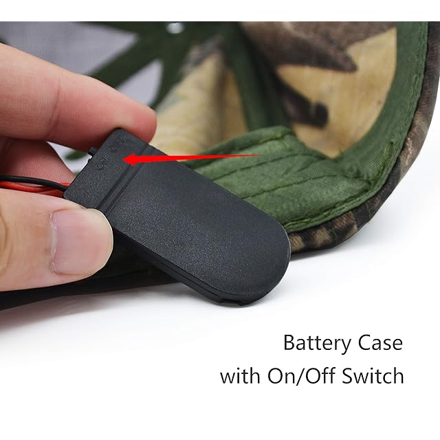 スイッチはつばの下にあり、ON/OFF使いやすい。バッテリーボックスが開けられ、バッテリーが交換易い。商品には2つのスイッチがあります。メインスイッチはバッテリーボックスの片側にあり、もう一つのスイッチはつばの下にあります。バッテリーボックス側のメインスイッチを開けてから、つばの下のスイッチを押せば、LEDライトが点灯します。