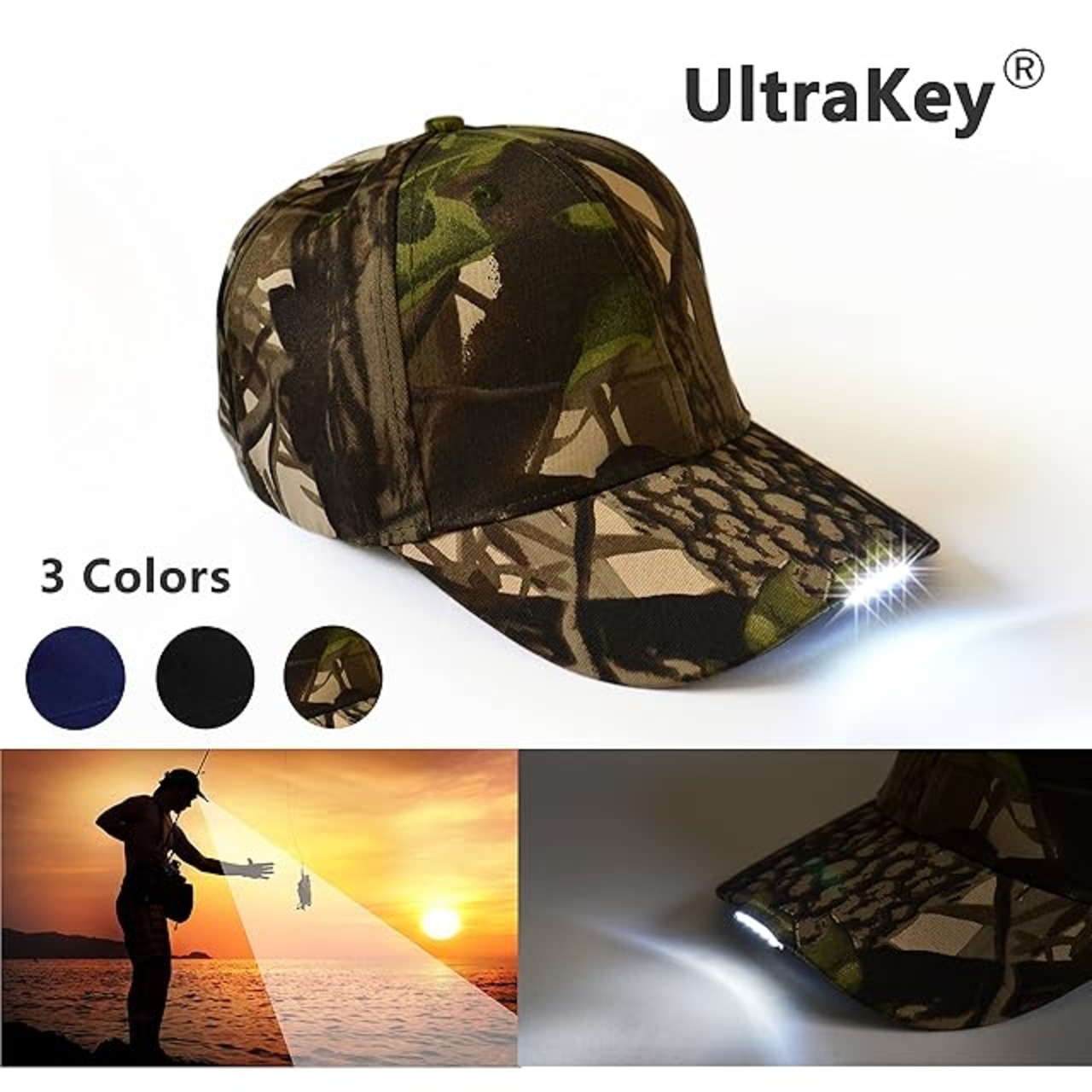 [UltraKey] LEDベースボールキャップ、超明るい led 男女室外運動、夜間運動、室外ジョギング通気ベースボールキャップ、hip hop、パーティー、祝日、コンサート、カーニバル等に適用 カモフラージュ