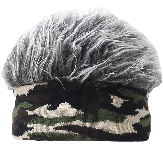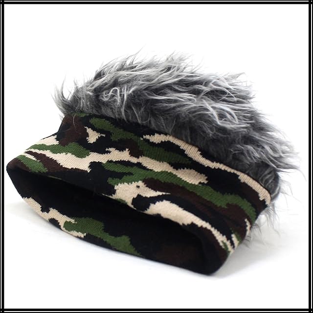 [ホワイトファング] ハット 迷彩柄 髪の毛 カツラ 帽子 スキー スノボー ファー カラフル メンズ レディース CZ290(グリーングレー)