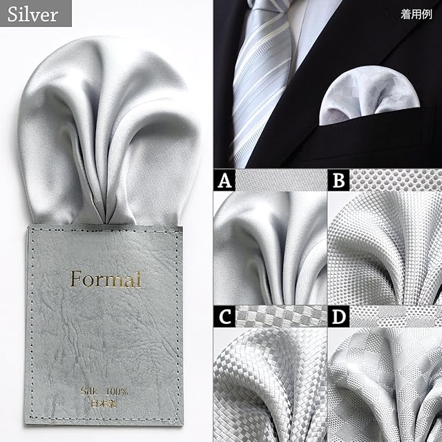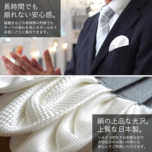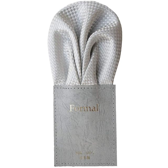 【日本製】 豊富なバリエーションから選べる シルク ポケットチーフ 差し込み ピークス メンズ 絹 礼装 フォーマル 結婚式 披露宴 パーティー 二次会 慶事 冠婚葬祭 舞台衣装 式典 セレモニー 白 ホワイト シルバー 簡単ワンタッチ (PDSV市松小)