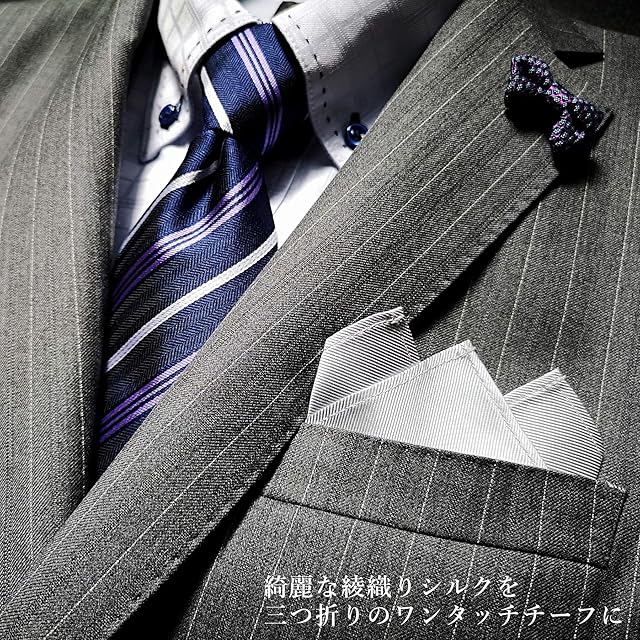 [パリス16ク] ポケットチーフ メンズ 台紙付き ワンタッチ シルク 日本製 三つ折り シルバー
