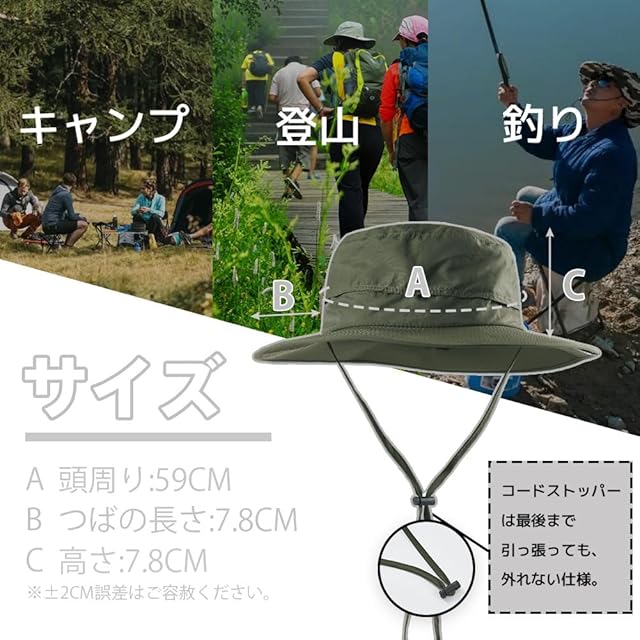 【サイズ】つばの長さ約6cm、サイド約7cm、後ろが約8cm。日よけ効果と視界を兼ね備え、様々なアクティビティに適しています。