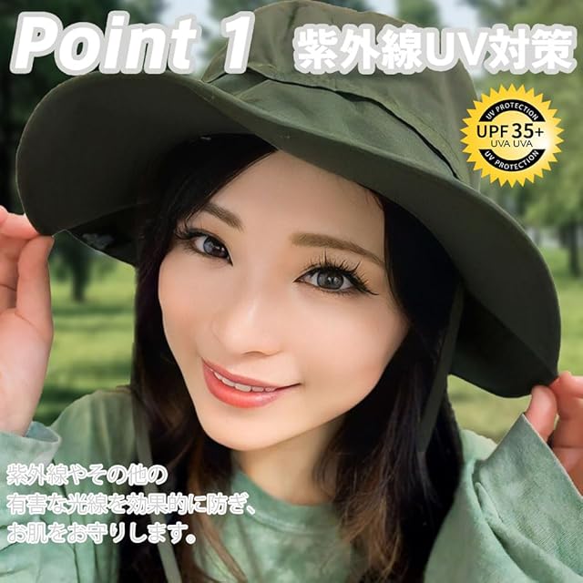 [TaoTech] サファリハット メンズ 帽子 折り畳み UVカット ひも付き 汗止め 日焼け防止 速乾性 軽量 防風 釣り 登山 ハイキング ゴルフ 自転車 スポーツ ハット(Free,ダークグリーン)