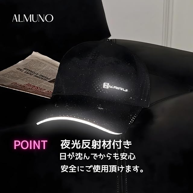 【機能性】:軽くて通気性、速乾性に優れた素材を使用 ロゴ、ツバ先に蛍光素材を使用して夜間のランニング、ジョギングも安心してご使用頂けます。