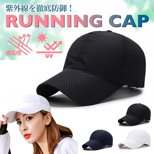 [VERISSY] ランニングキャップ 帽子 キャップ メンズ レディース 無地 メッシュ 通気性 日除け UVカット ランニング 野球帽 深め 運動 走る (ネイビー)