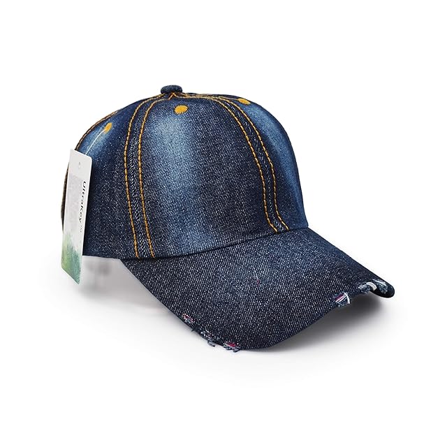 [UltraKey] デニムベースボールキャップ、ユニセックススポーツハットカジュアルレディースメンズサンハットアウトドアカウボーイキャップ 紺