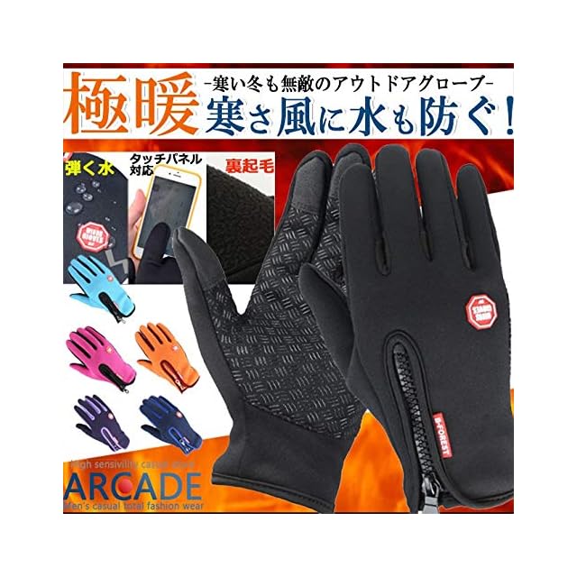 (アーケード) ARCADE 手袋 防寒 防風 撥水 防水 グローブ 裏起毛 裏フリース スマホ対応 スマホ手袋 メンズ レディース アウトドア XL パープル