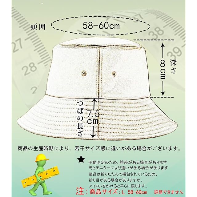 【サイズ】 L:59cm(58-60cm対応) 深さ:約8.5cm つばの長さ:約7.5cm ※ 記載のサ