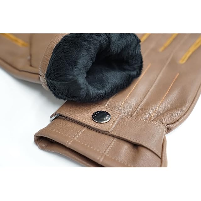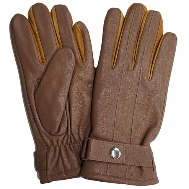 [エルオム] メンズ レザー グローブ マチ スエード 裏起毛 刻印 金具 ベルト付 革 手袋 ケース付 24cm ブラウン/キャメル