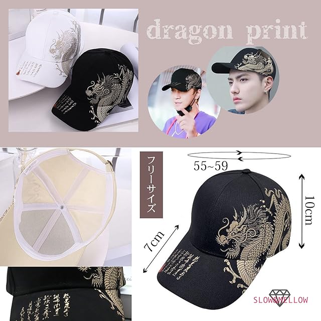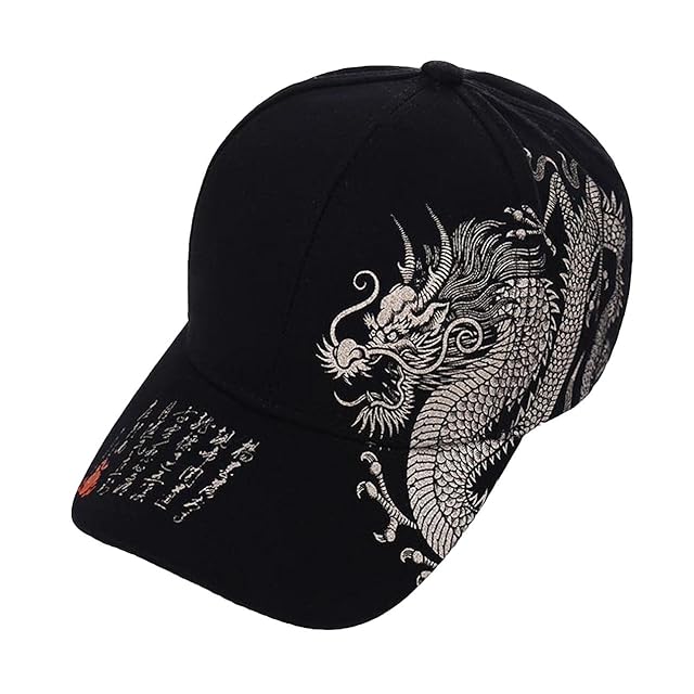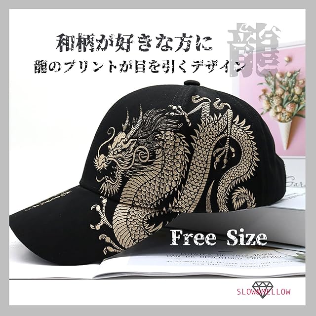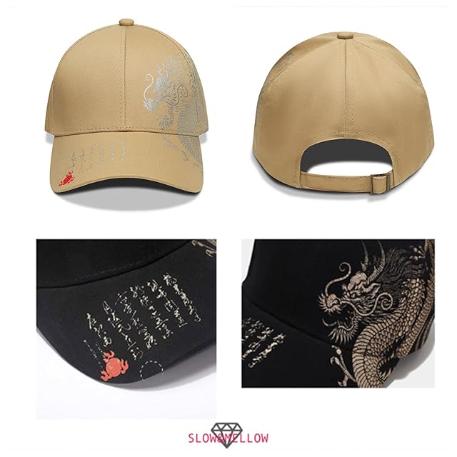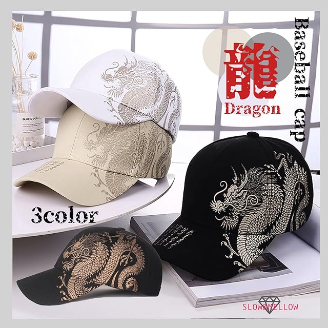 キャップ ドラゴン 龍 デザイン 和柄 ベースボールキャップ 帽子 カジュアル メンズ 漢字 CAP サイズ調整 可能 3カラー ユニセックス ぼうし きゃっぷ 春 夏 秋 冬 大きい 大きめ スポーツ アウトドア ストリート 系 野球 帽 黒 白 色 ベージュ ブラック ホワイト 紫外線 対策 UV カット 刺繡 男女兼用 日よけ 日除け サイズ 調整 可能 アジャスター (ブラック)