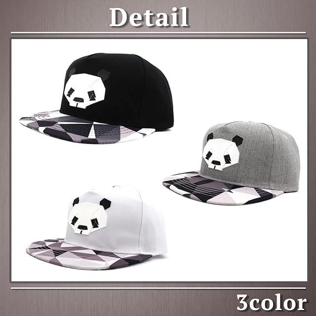 グラフィック調 の パンダ がデザインされた ユニーク で かわいい カジュアル 平つば キャップ !かわいい シルエットが特徴的な 帽子 です。