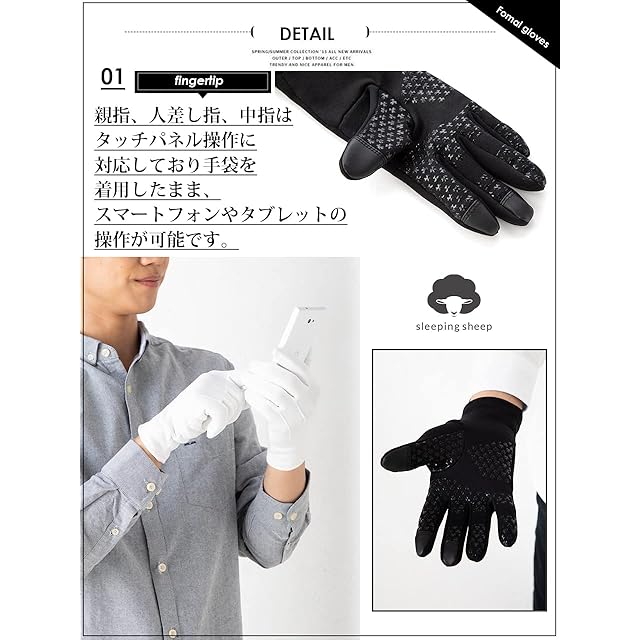 [SANDAI] [サンダイ] 防寒対策に フリース スマートフォン対応 裏起毛 滑り止め付 礼装 用 フォーマル メンズ 手袋 グローブ L ブラック