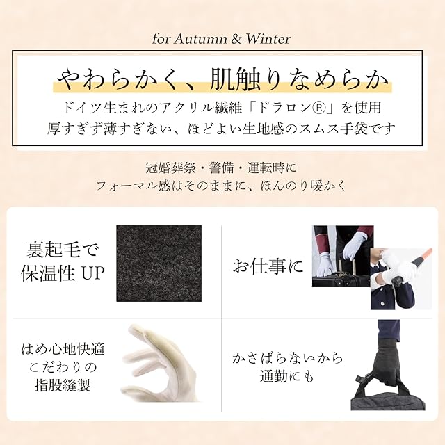 おたふく手袋(OTAFUKU GLOVE) 軽防寒スムス手袋 [裏起毛 フォーマルグローブ 男女兼用] G-555 ブラック LL