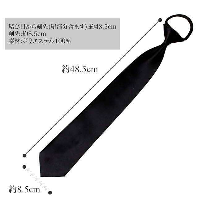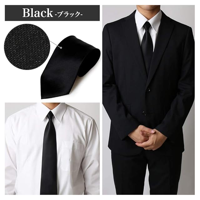 [アトリエサンロクゴ] フォーマルネクタイ ワンタッチ 白 黒 簡単装着 ポリエステル 無地 メンズ sun-ux-ne-1755 ブラック 日本 FREE サイズ (FREE サイズ)