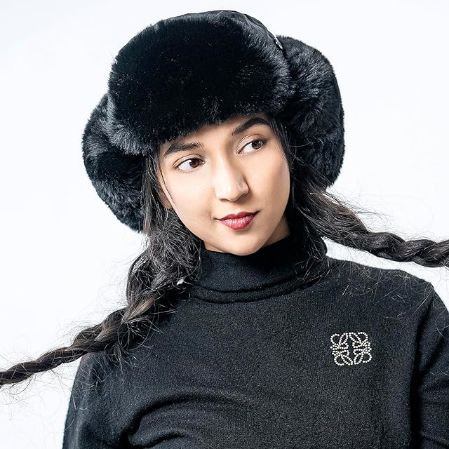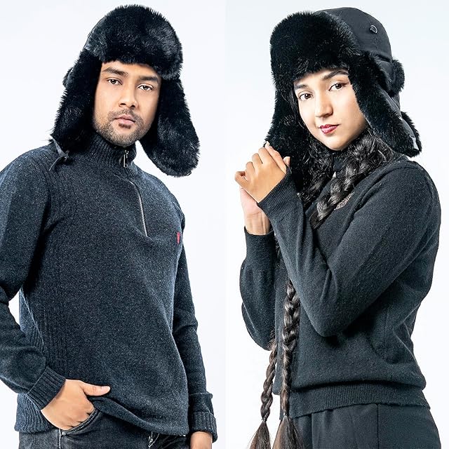 [HEYANN] トラッパーハット ボンバーハット 飛行帽 ロシアン帽 耳あて付き 防寒 防風 保温 冬 暖かい ふわふわ 自転車 登山 雪かき アウトドア 散歩 おしゃれ (S/M, ブラック・blacktatu)