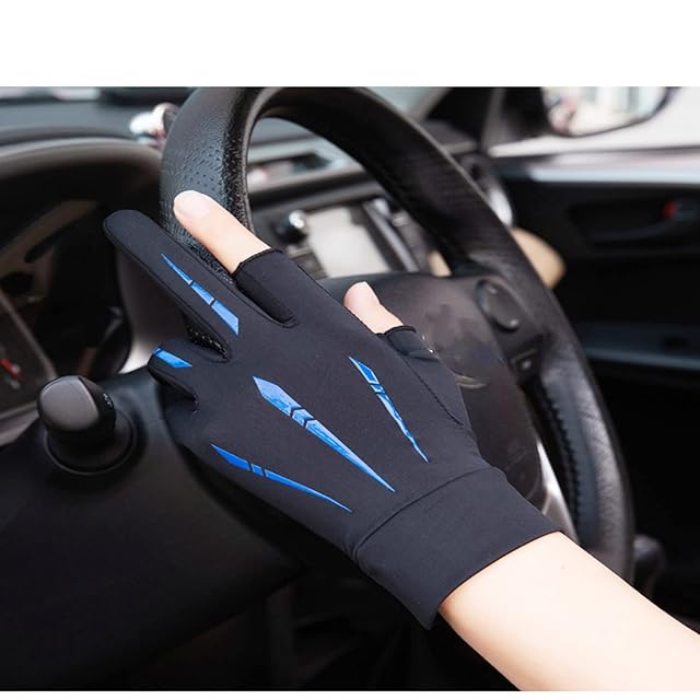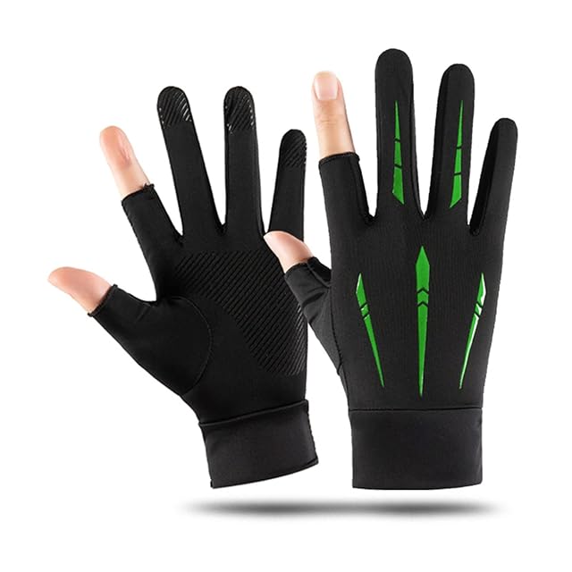[Kukeyiee] メンズグローブ 春夏用 冷感手袋 薄手 UVカット 指出し り 滑り止め スマホ操作 ストレッチ 速乾性 釣り サイクルグローブ 運転用 通勤 通学 (ブラックとグリーン)