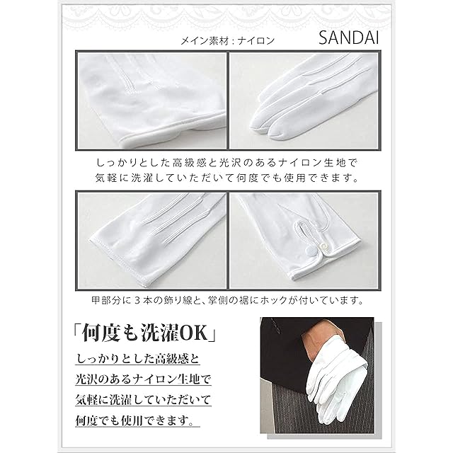 [SANDAI] ブラック 追加 礼装 用 フォーマル メンズ 白 手袋 ホック付き (S ~ 3L) 東レ 社製 ナイロン 使用 グローブ 1・2・ 3・ 4・ 5・ 10双セット (2L, ホワイト(10双))
