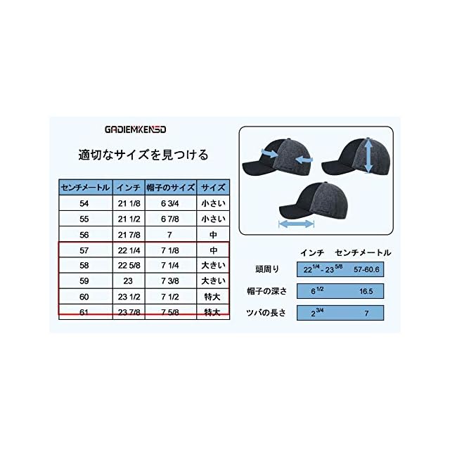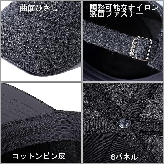 GADIEMKENSD 羊毛野球帽 - 良質な羊毛混紡、弧形日除けシート、6枚式伝統パネル、6つの刺繍穴目、通気性が良いです。2種類のサイズで、調節ボタンがあります。22"- 22 3/4" (55.9-57.8cm) サイズは多くの女性に向いています、22 3/8"-23 1/2"(56.8-59.7cm)サイズは多くの男性に向いています。ご購入前に頭囲をご確認ください。
