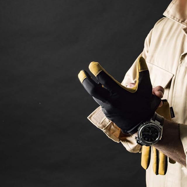 おたふく手袋(Otafuku Glove) 人工皮革手袋 フーバー [人工皮革 ショート丈 甲部ストレッチ素材] FB-51 ブラックxキャメル L