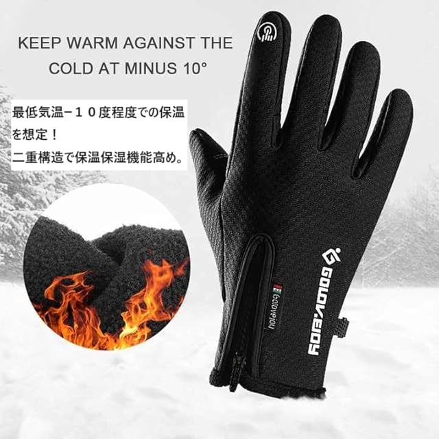 【マルチに使いやすい】暖かい 防寒・防水グローブ 裏起毛・零下10℃防寒 スマホ対応 スポーツ スキー スノーボード キャンプ 除雪 サイクリング 散歩 ランニング マルチに活躍!… (L)