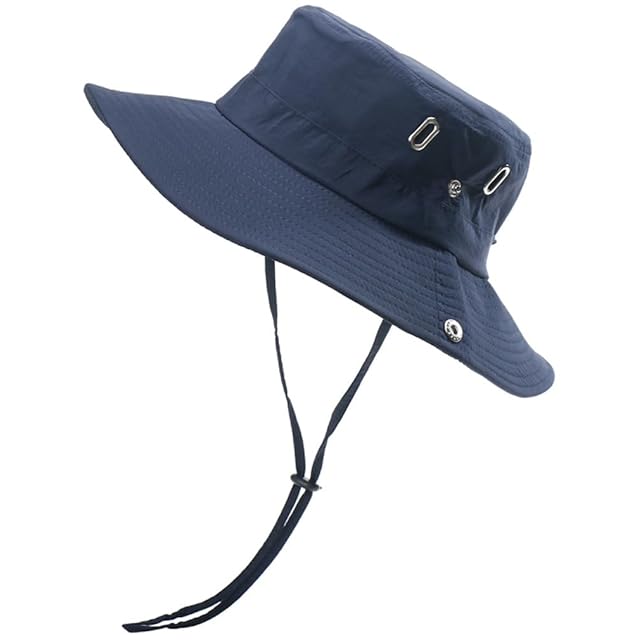 [Natural Rhythum] サファリハット メンズ レディース 帽子 ハット バケットハット アウトドア 撥水 折り畳み 日焼け防止 アドベンチャーハット ジャングルハット ブーニーハット UVカット 紫外線 対策 つば付き 速乾 ひも付き 大きいサイズ サイズ 日除け アウトドア用 (ネイビー)