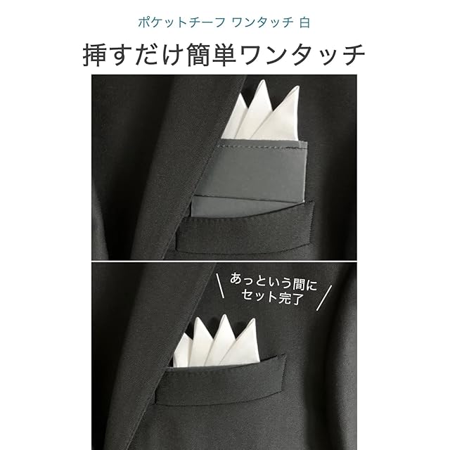 [wumio] ポケットチーフ ワンタッチ 白 挿すだけ 簡易 ドレスアップ ポケット チーフ メンズ スーツ 冠婚葬祭 シンプル 簡単 パーティー 結婚式 時短 ズボラ