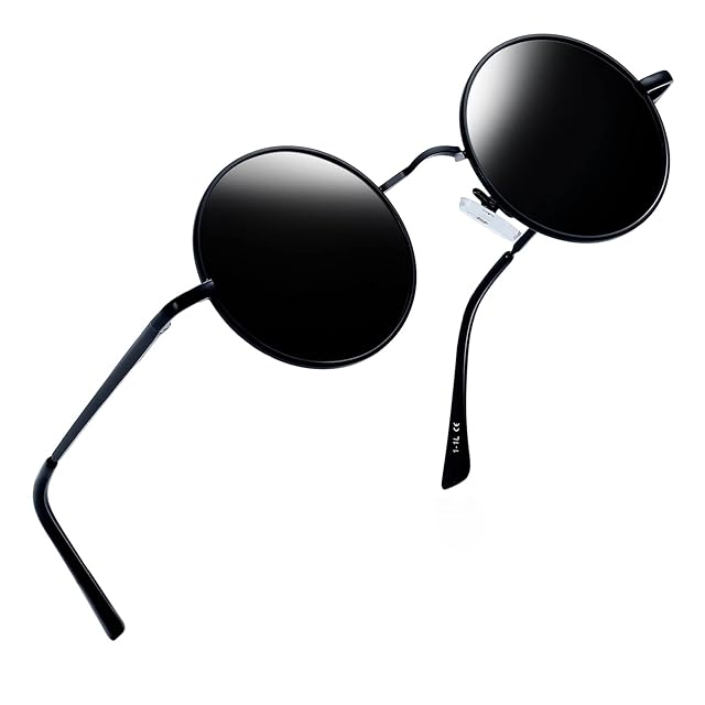 [Joopin] サングラス メンズ 偏光 丸型 ラウンド 偏向レンズ レディース UV400保護 紫外線カット 軽量 釣り 運転用 登山(ブラック/ブラック)