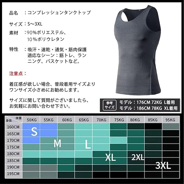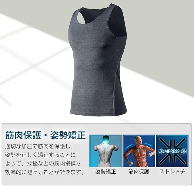 [Sillictor] タンクトップ メンズ スポーツインナー ノースリーブ コンプレッション インナーシャツ パワーストレッチ アンダーウェア [UVカット・冷感速乾] 1001gr-2XL