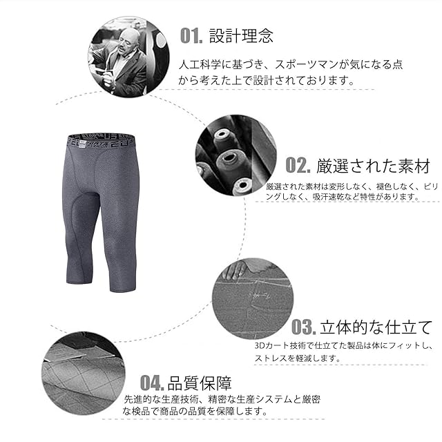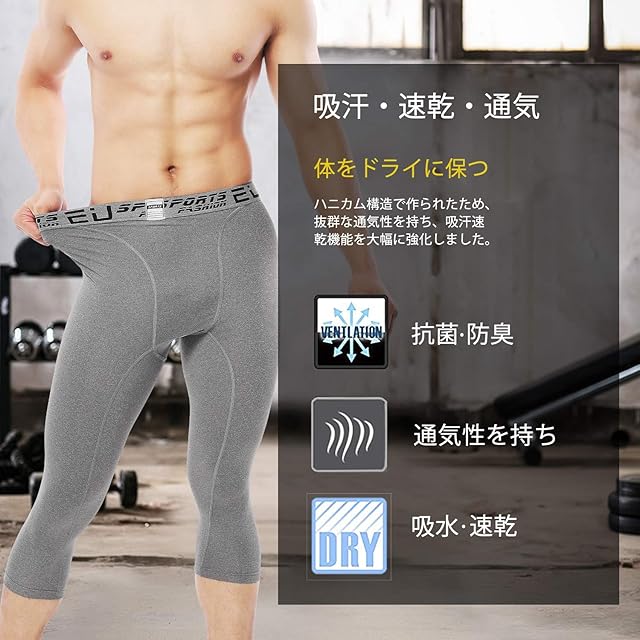 [Sillictor] スポーツ スパッツ メンズ パワーストレッチ 7分丈 アンダーウェア コンプレッション タイツ [UVカット + 吸汗速乾] グレー 3327gr-XXL