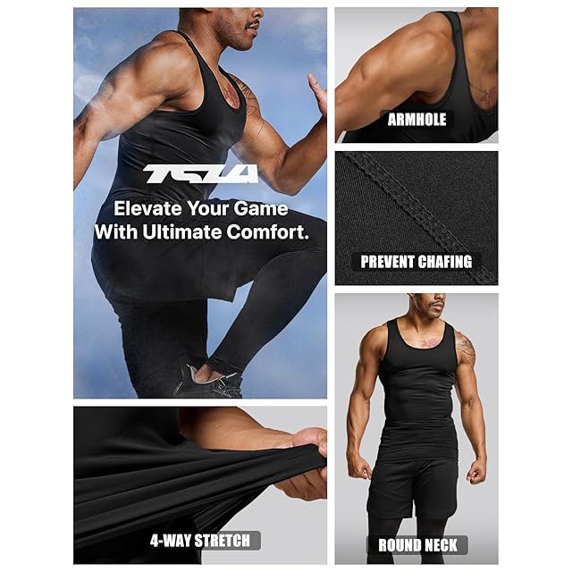 [テスラ] スポーツインナー タンクトップ メンズ 3枚 セット [UVカット・吸汗速乾] ノースリーブ コンプレッションシャツ コンプレッションウェア ランニング トレーニング フィットネス スポーツ Tシャツ ベースレイヤー 野球 アンダーシャツ 加圧シャツ MUN24-KKW_2XL