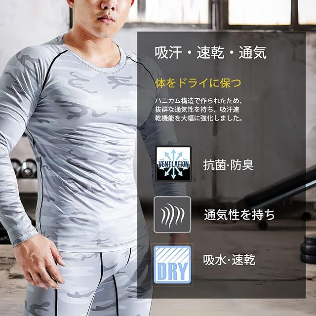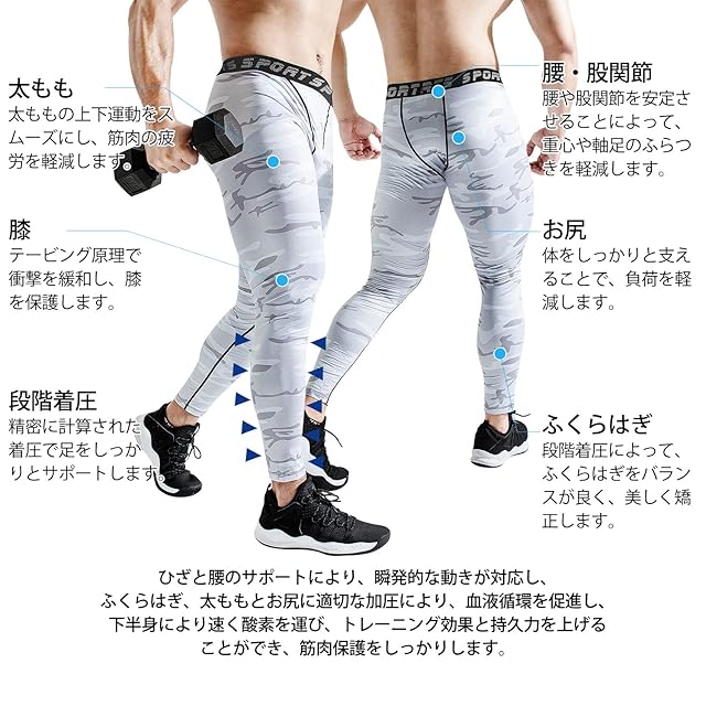 sillictor コンプレッション ウェア 上下 セット メンズ スポーツ アンダーシャツ + ロング タイツ [加圧矯正 + 吸汗速乾] 迷彩 ホワイト3315+3316wh-2XL