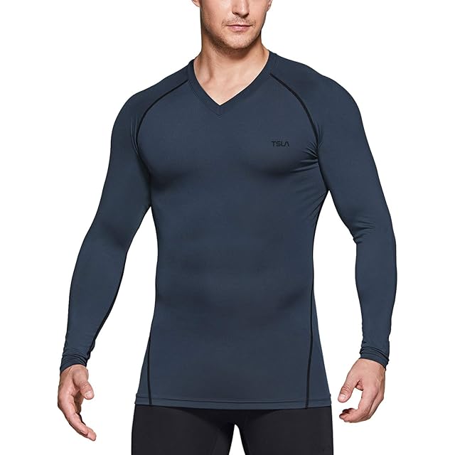 機能性のコンプレッションvネック長袖スポーツtシャツ