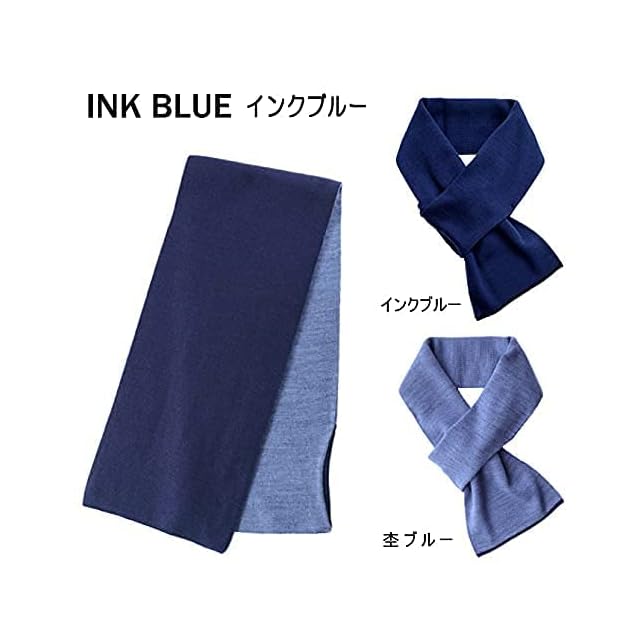 [ディー・プラス・アーツ] コンパクトな ミニ マフラー ショート 無地 リバーシブル 日本製 (インクブルー)