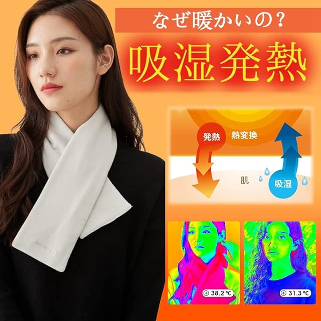 【着脱ラクラク】洋服の襟元の上からしっかりと固定できるように、片方のループに先を通すだけなので、誰でもとても簡単に着用できます。レディースならファンデーションが付いたり、メイクと髪型が崩れてしまうこともないので安心できます!薄着で出かけたい、冬場のちょっとした外出時にさっと巻くだけで首元を温めて寒さからガードしてくれます。