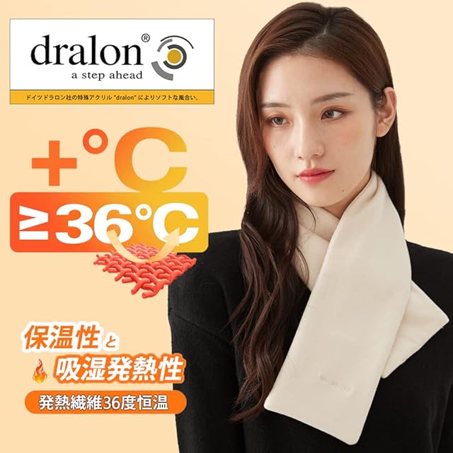 【ドロラン素材・吸湿発熱】ドイツ生まれのドロラン素材と良質の他繊維を混紡する事により、快適なはき心地と丈夫さをつくりあげています。より繊細で柔らかい、肌にやさしくて刺激がありません。ドロラン素材特有の吸湿発熱性で、体から蒸発した水分を熱エネルギに転換して、寒い時ネックを暖かく包み込みます。