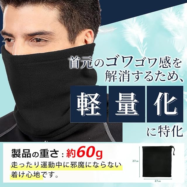 【究極の防寒保温防風】暖かい状態を保つ柔らかい素材を採用して、ネックウォーマーを付けた瞬間から暖かくなります。肌触りの良い素材で、ふんわりと首周りを包み込む軽い被り心地で、暖かくて気持ち良く着けます。口元や鼻までをしっかりと覆えるフェイスカバータイプで、防寒性に優れたネックウォーマーを探している方におすすめです。耳まで覆えるので、イヤーウォーマーの代わりとしても活躍します。